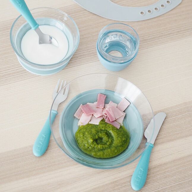 Beaba Meal set Шилэн аяга таваг сэт цэнхэр 3ш