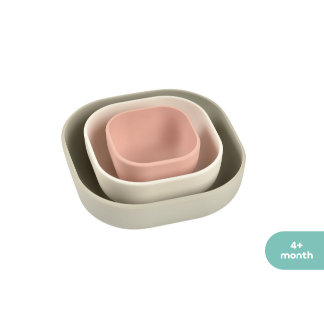 Beaba Silicone 3 Piece Nesting Bowl Set Pink