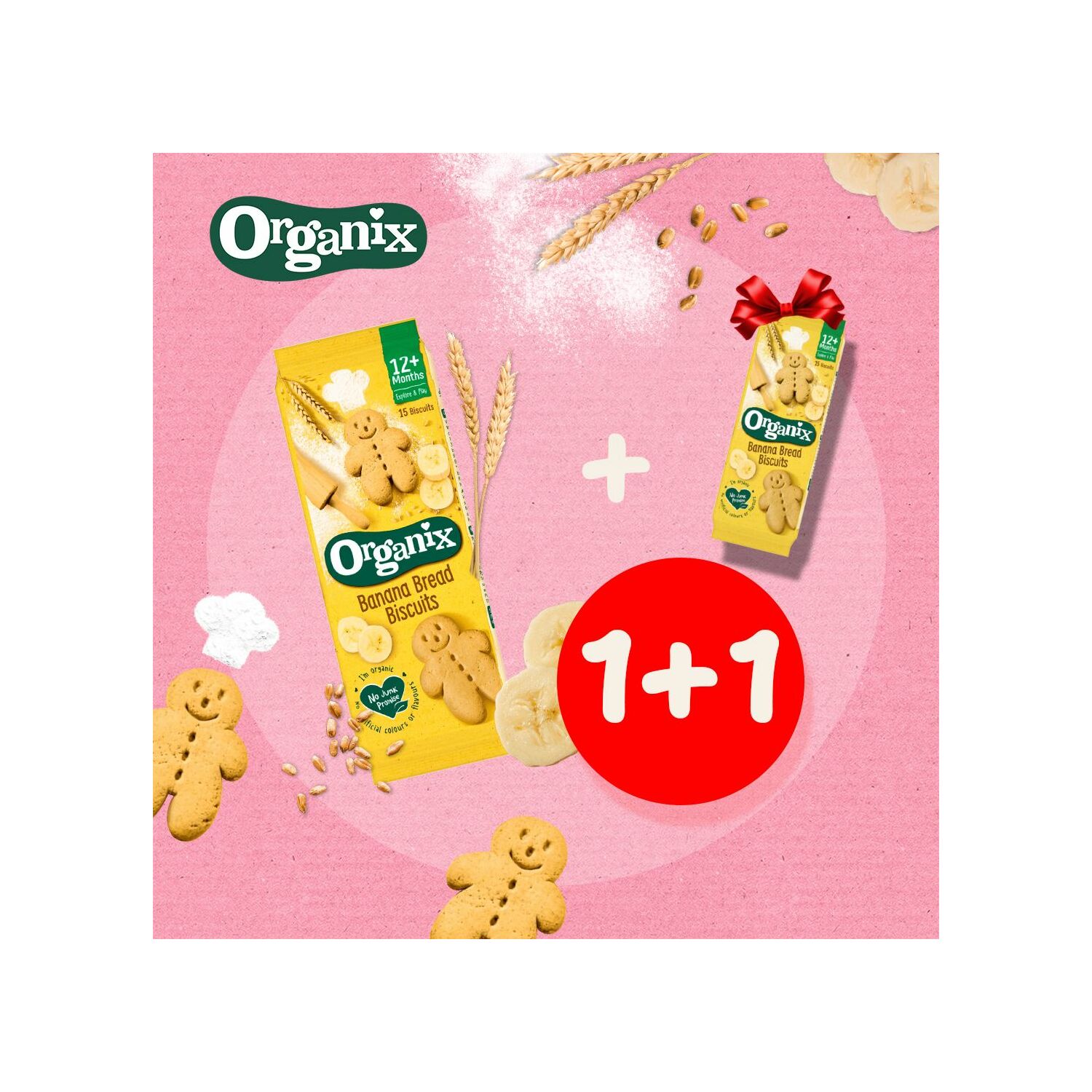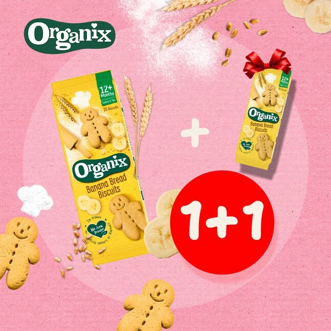1+1 урамшуулалтай Organix Banana Bread Biscuits | Гадил жимстэй жигнэмэг