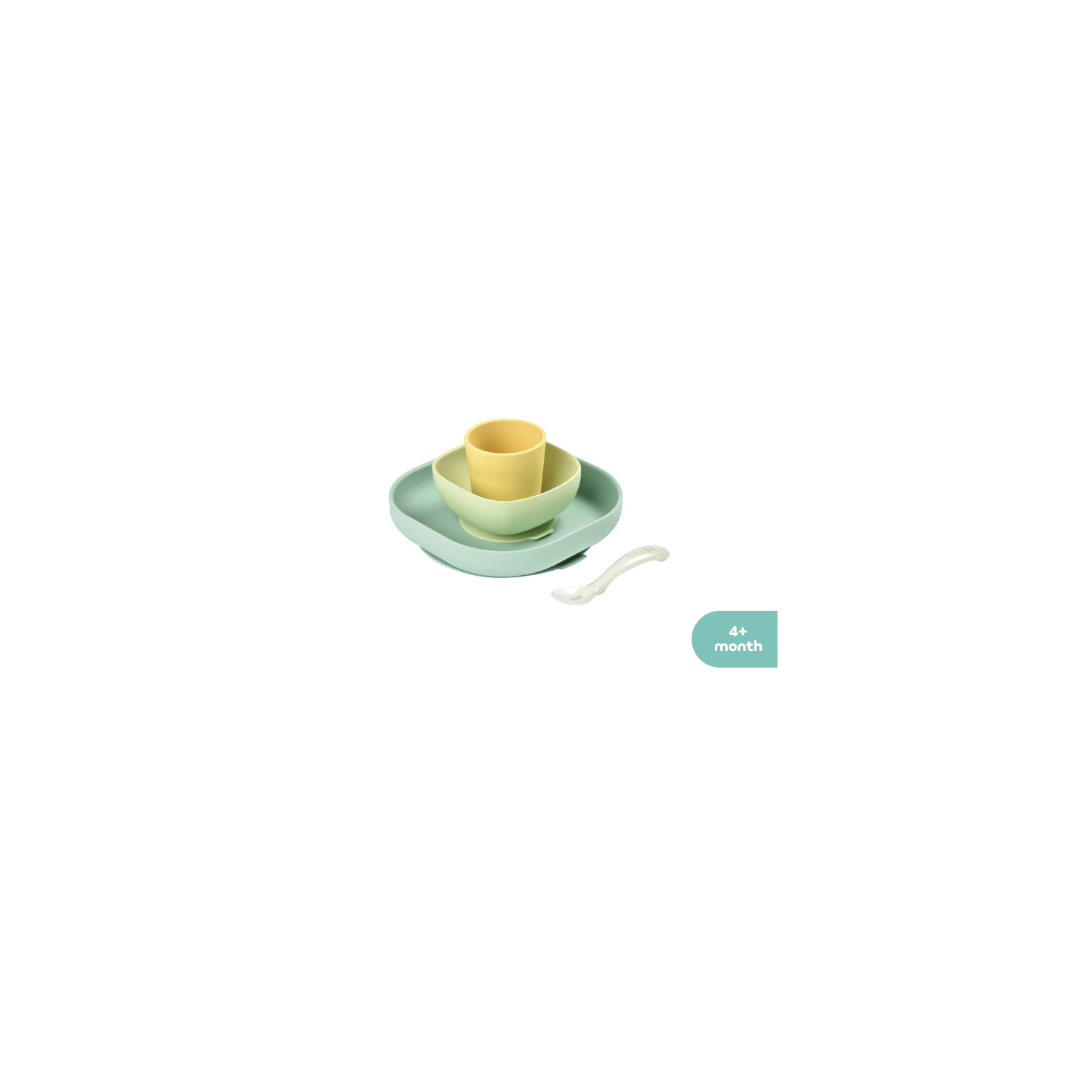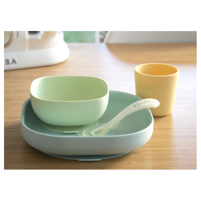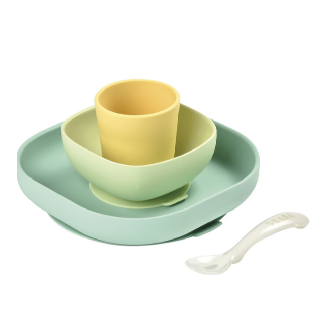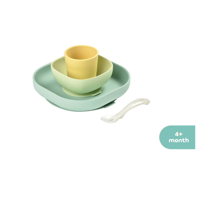 Beaba Хоолны сэт силикон наалддаг ногоон,шар 4ш