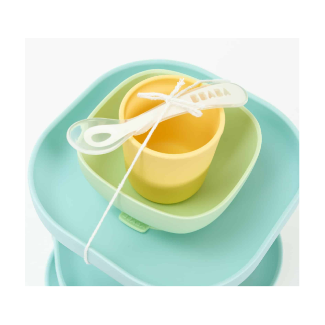 BEABA 4-PIECE SILICONE DINNER SET YELLOW