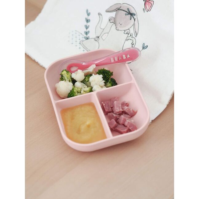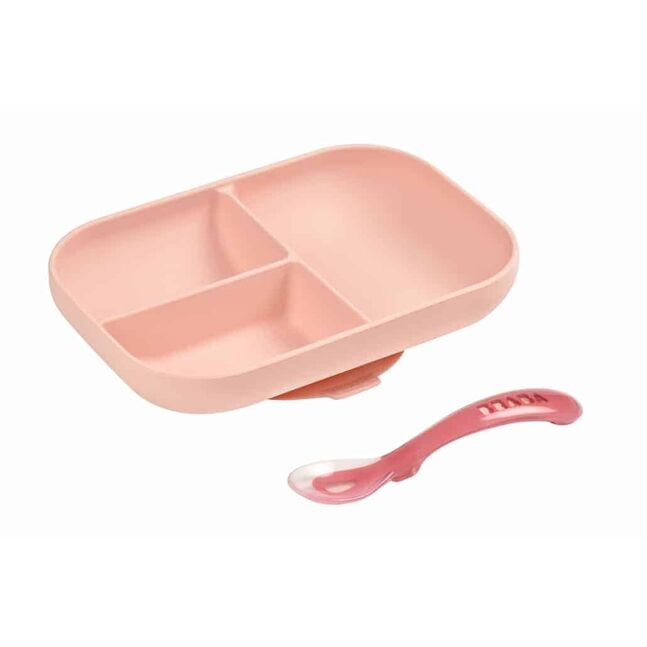 SILICONE SUCTION DIVIDED PLATE + 2 AGE SPOON PINK