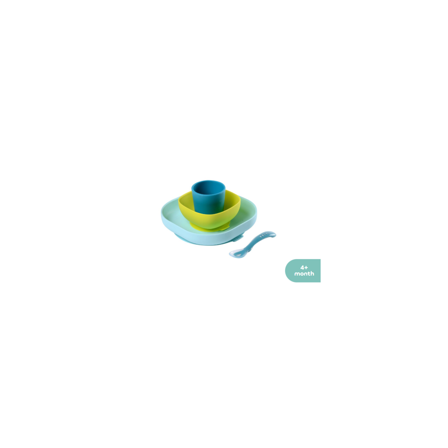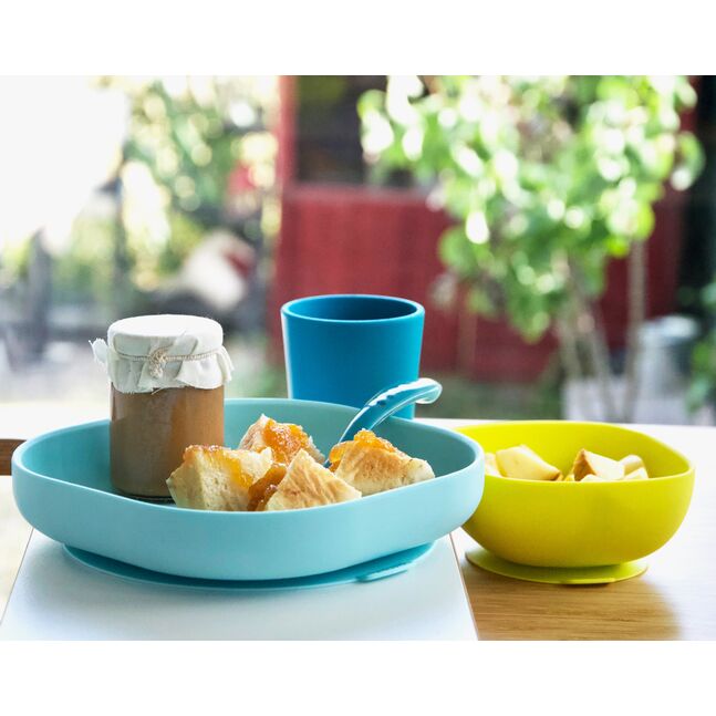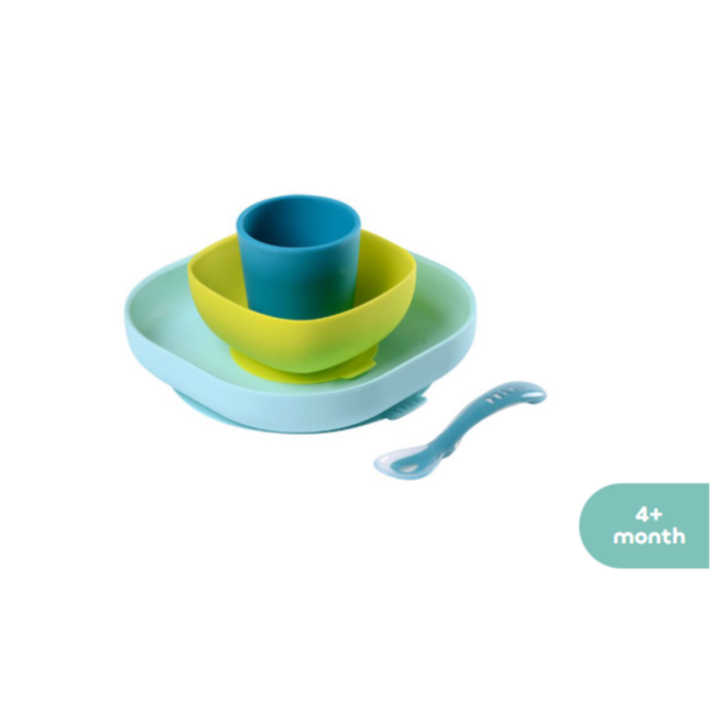 Beaba Хоолны сэт силикон наалддаг цэнхэр,шар 4ш